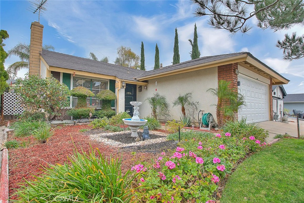 4 bedroom/2 bath SINGLE story home located on a peaceful cul-de-sac. High ceilings as you enter create a spacious feeling in the living room which also enjoys a cozy fireplace. Vinyl flooring has been installed in the living, dining and kitchen areas and shows nicely. The kitchen has been upgraded with refaced cabinetry done in rich wood tones. The kitchen skylight adds natural light to this space. The primary bedroom has on-suite 3/4 bathroom. The guest bathroom has both shower/tub combination. One guest bedroom is currently used as a den. Sliding doors from the dining area lead to a private backyard with concrete patio, a nice spot for outside dining. Notable extra: brand new garage door just recently installed. Additional gated parking on the side of the home is another helpful feature for extra storage needs or vehicle parking. Property location highlights include Windrows Elementary School conveniently located nearby. (just minutes to drive & within a short walking distance) Easy access to the 210 & 15 freeways. Fantastic shopping and multiple dining options at Victoria Gardens outdoor shopping mall located south of the home right off Day Creek. Other local shopping centers are also close-by as well as neighborhood parks.