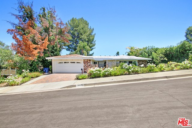 FULLY FURNISHED, turn key, open and airy 4Bedroom/2.5bath mid century ranch style single family home with panoramic valley vista-city lights views! Atrium entry opens to split designed open floor plan with wood laminate flooring, cathedral-vaulted ceilings with recessed lighting, chef's kitchen with granite counters, kitchen island and breakfast nook, den, powder bath, formal dining and family room with stone fireplace. Additional features include custom cabinetry, remodeled baths+ large walk in closets throughout. French glass doors lead to spacious covered, entertaining patio with grassy yard, with lemon and orange trees+ additional elevated lookout patio with spanning valley views! 2 Car garage with driveway parking. Washer/Dryer. Located in a lovely, quiet residential neighborhood with wide streets and convenient freeway access, including 101 freeway. Convenient to Calabasas, Thousand Oaks, Westlake Village, Agoura Hills, Simi Valley, San Fernando, Santa Monica or Beverly Hills. List price includes home complete with furniture, housewares, fully equipped kitchen+ gardener. Available Now!
