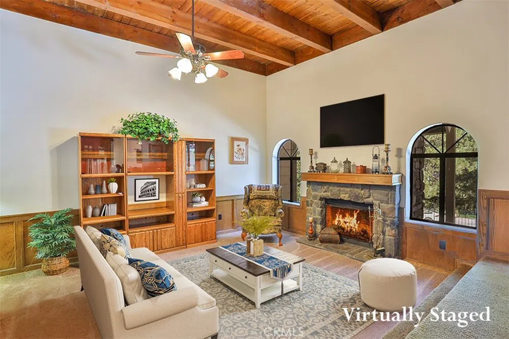 Accepted Offer. Accepting Back-up Offers only. Short walk to the Lake! Lake Rights! Lake Rights so you can put a kayak or boat on the lake or buy a dock! New Photos! Walking distance to Blue Jay Village! Short drive to Lake Arrowhead Village! Newly painted kitchen and bathrooms. This beautiful 3 Bedroom 2 Bath condo is located amongst towering pines with over 2178 s.f. of living space! There is a large Living Room with dramatic high wood beamed ceiling, new carpet, Fireplace, adjacent two-story atrium with skylights and attached deck. Some units have turned the Atrium into additional living areas on both floors. Large Dining Area and also an eat-in Kitchen with booth, newer appliances and walk-in Pantry. Upstairs is a spacious Primary Suite with private deck, attached Primary Bath with dual vanity, separate Shower and Spa Tub. There is also a walk-in closet and access to a large unfinished bonus room that is already drywalled with electrical! Great for an office, Storage or ? In addition, there are two nice sized Guest Bedrooms with walk in closets, a full Guest Bath and a Laundry Room with closet, folding counter and loads of cupboards. The unfinished Build Up also offers room for storage or expansion! The home comes furnished per Positive Inventory List! Greenbelt and walking areas galore! HOAs covers exterior maintenance, roof, road maintenance and plowing, gates, common areas, fire insurance, parking and Trash pick-up. This is a true mountain community nestled in the pines! Make your Lake Arrowhead Dream a reality!